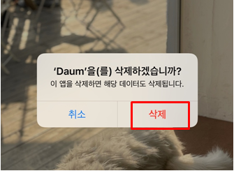 이번에는 어플을 완전히 삭제하는 것이기 때문에 어플을 사용하면서 저장되어있던 데이터가 삭제되어도 상관없다면 삭제 버튼을 눌러줍니다 그럼 어플이 완전히 삭제가 됩니다!