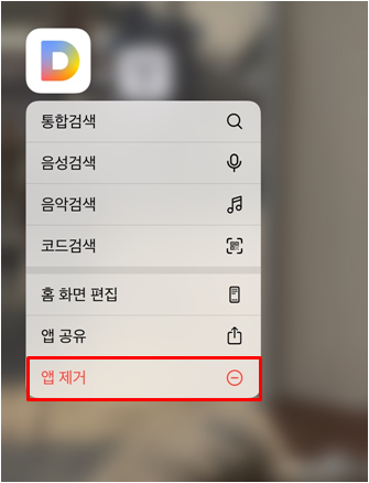 아까와 동일하게 삭제하고자 하는 어플을 꾹 눌러준 후 앱 제거 버튼을 클릭해줍니다.