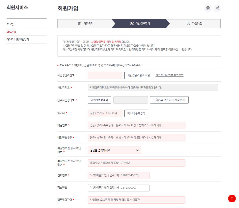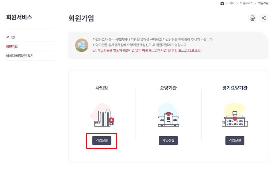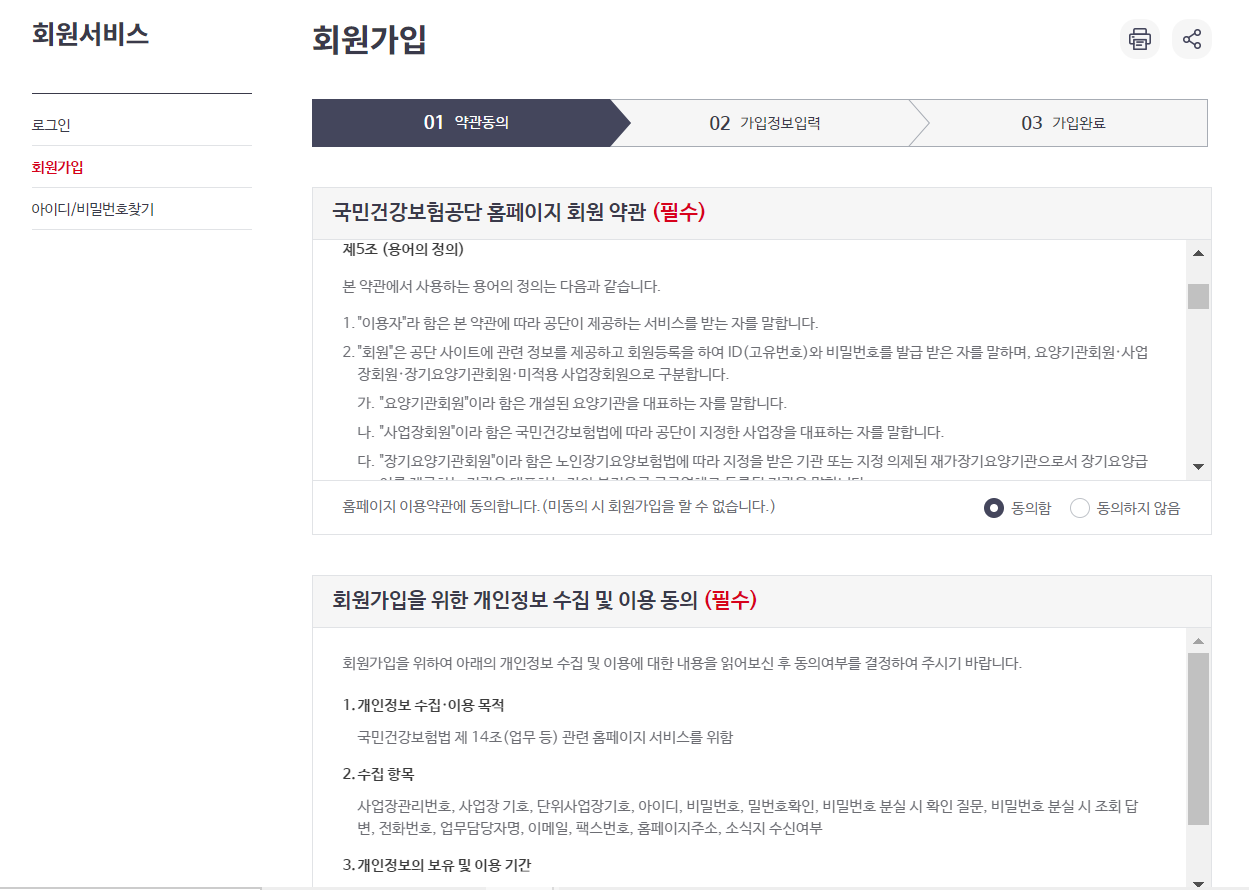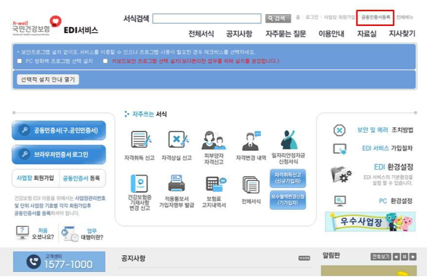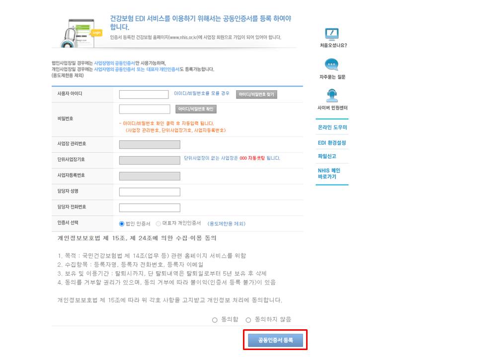 -건강보험공단 사업장회원으로 가입한 아이디와 비밀번호 입력후 공인인증서등록 -> 가입완료