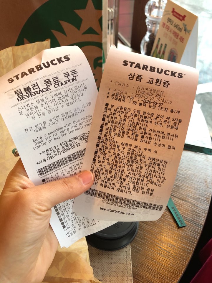 친구가 혹시나 해서 텀블러 교환증을 넣어주고