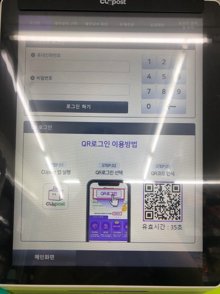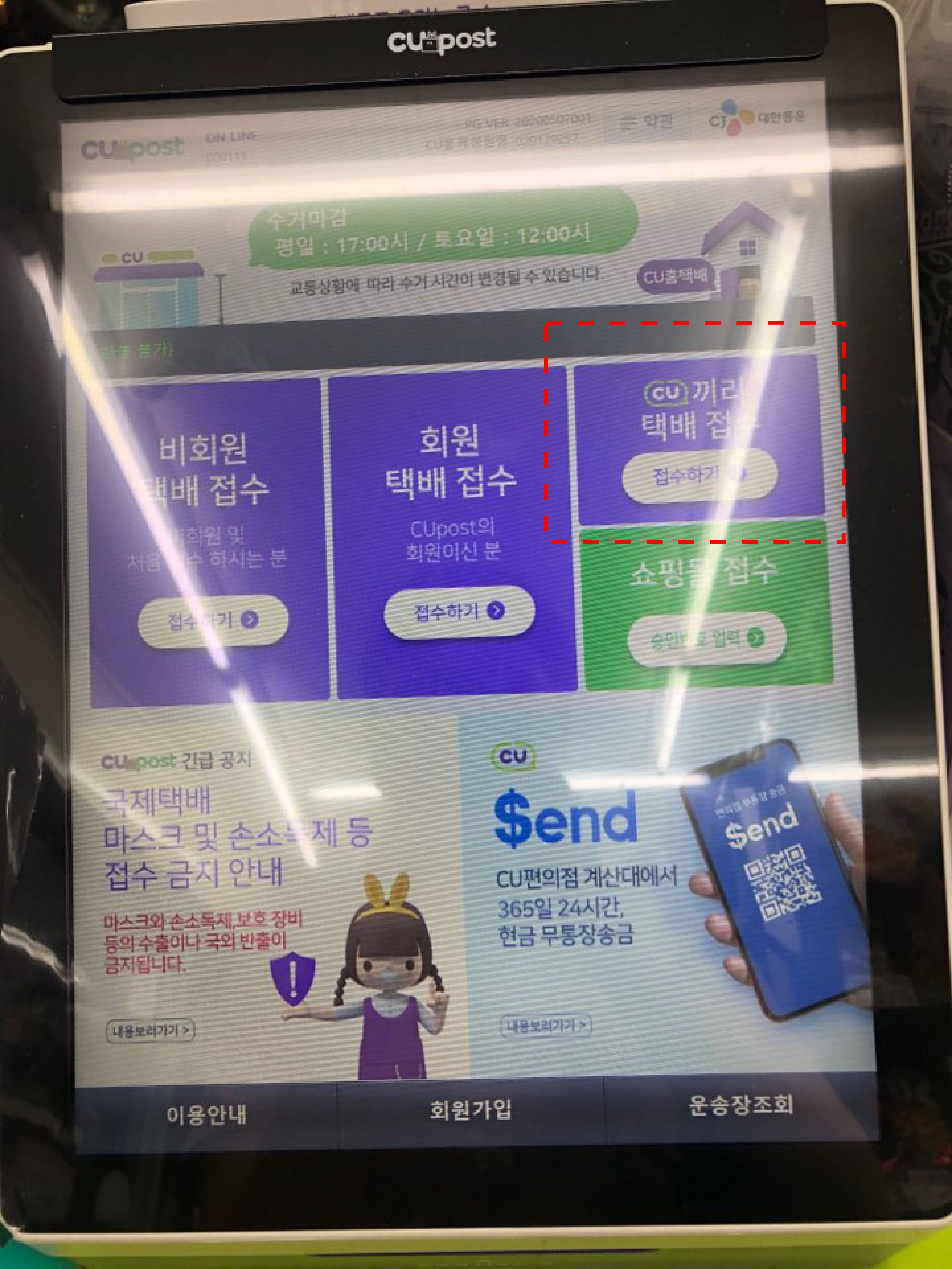 점포 택배기 가서 CU끼리 택배 접수를 눌러줍니다.