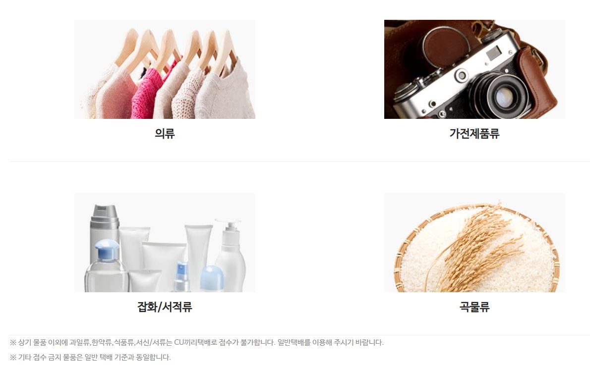 과일류, 한약류, 식품류, 서신 및 서류는 CU끼리 택배 접수가 불가능합니다.
