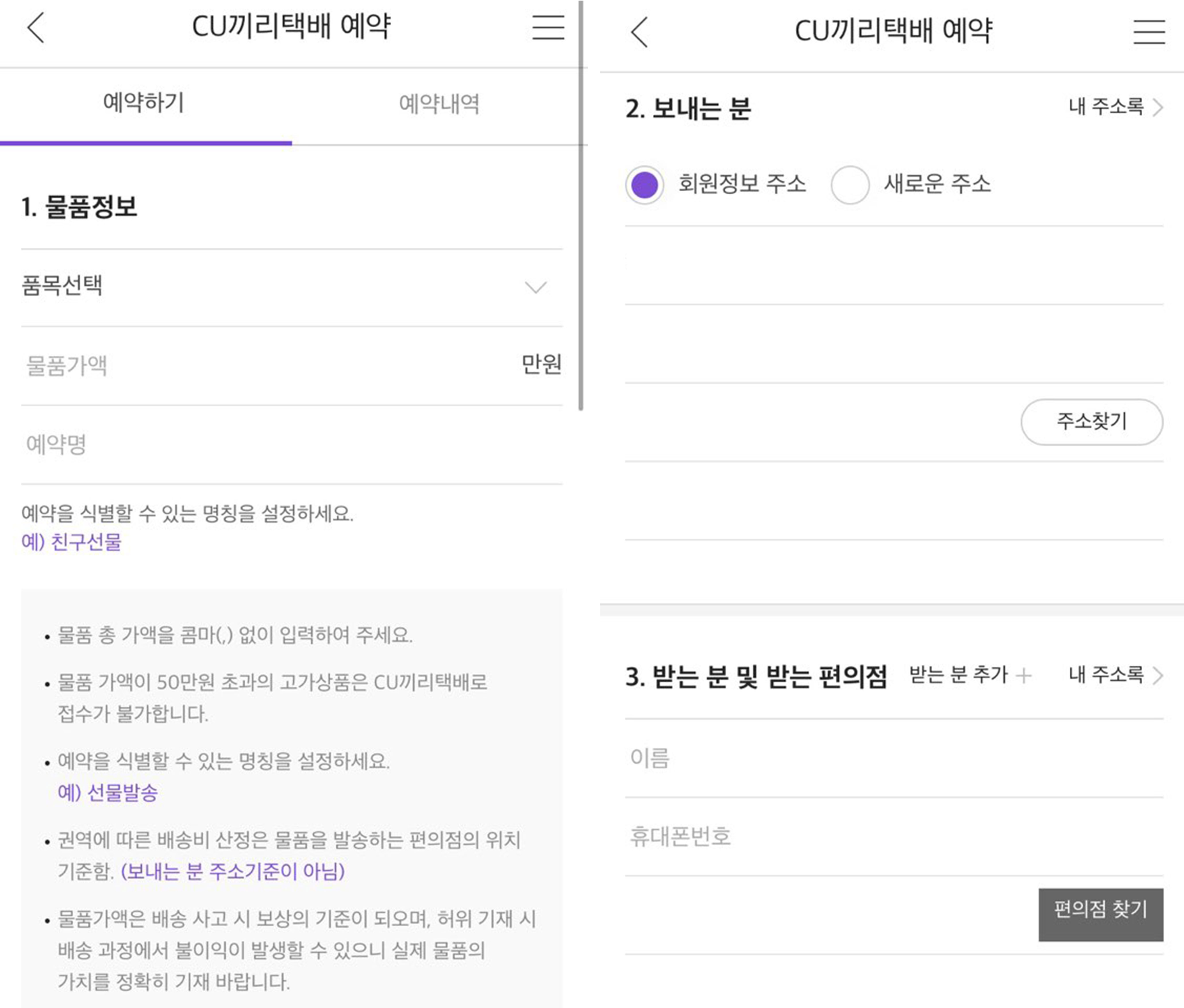 CU끼리 택배 이용 시 위 내용 참고해주시면 될 것 같아요