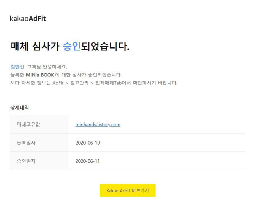 이상으로 카카오애드 핏 승인 후기였구요 작게나마 제 포스팅이 도움되셨으면 좋겠습니다~!