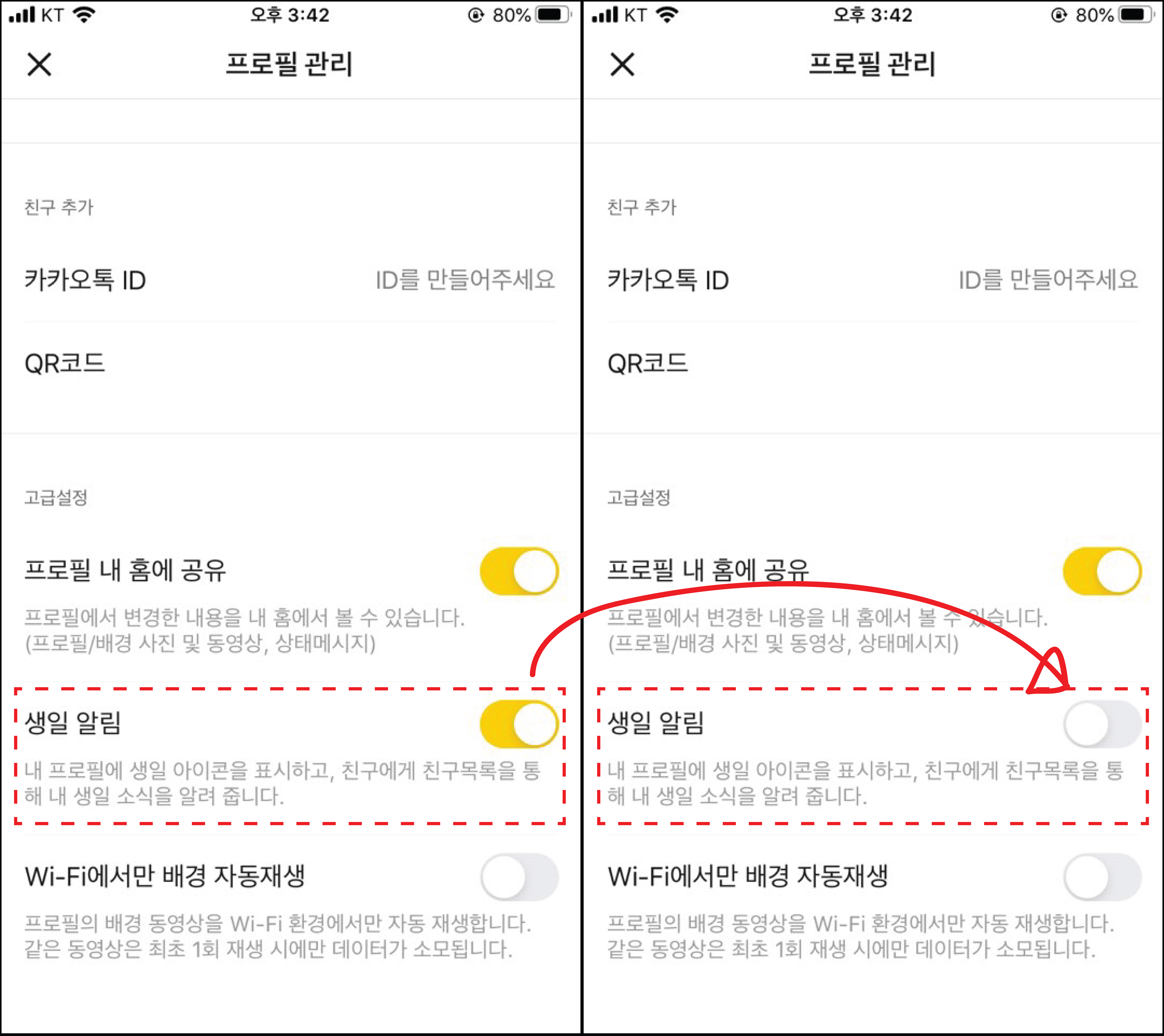 그럼 앞으로 친구 생일 알림이 카카오톡에 뜨지 않습니다.