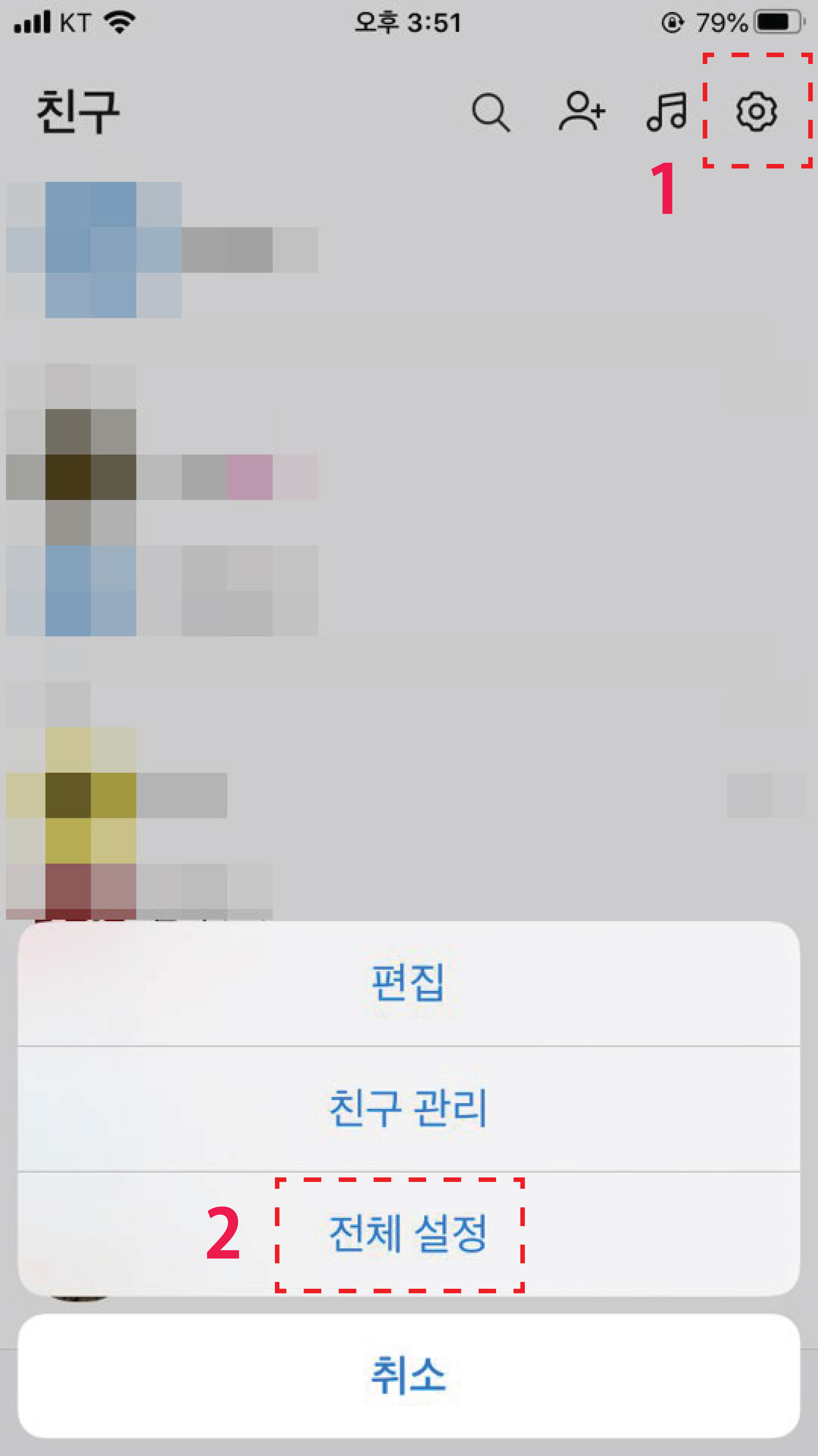 1. 카카오톡 상단 톱니바퀴 아이콘 눌러서