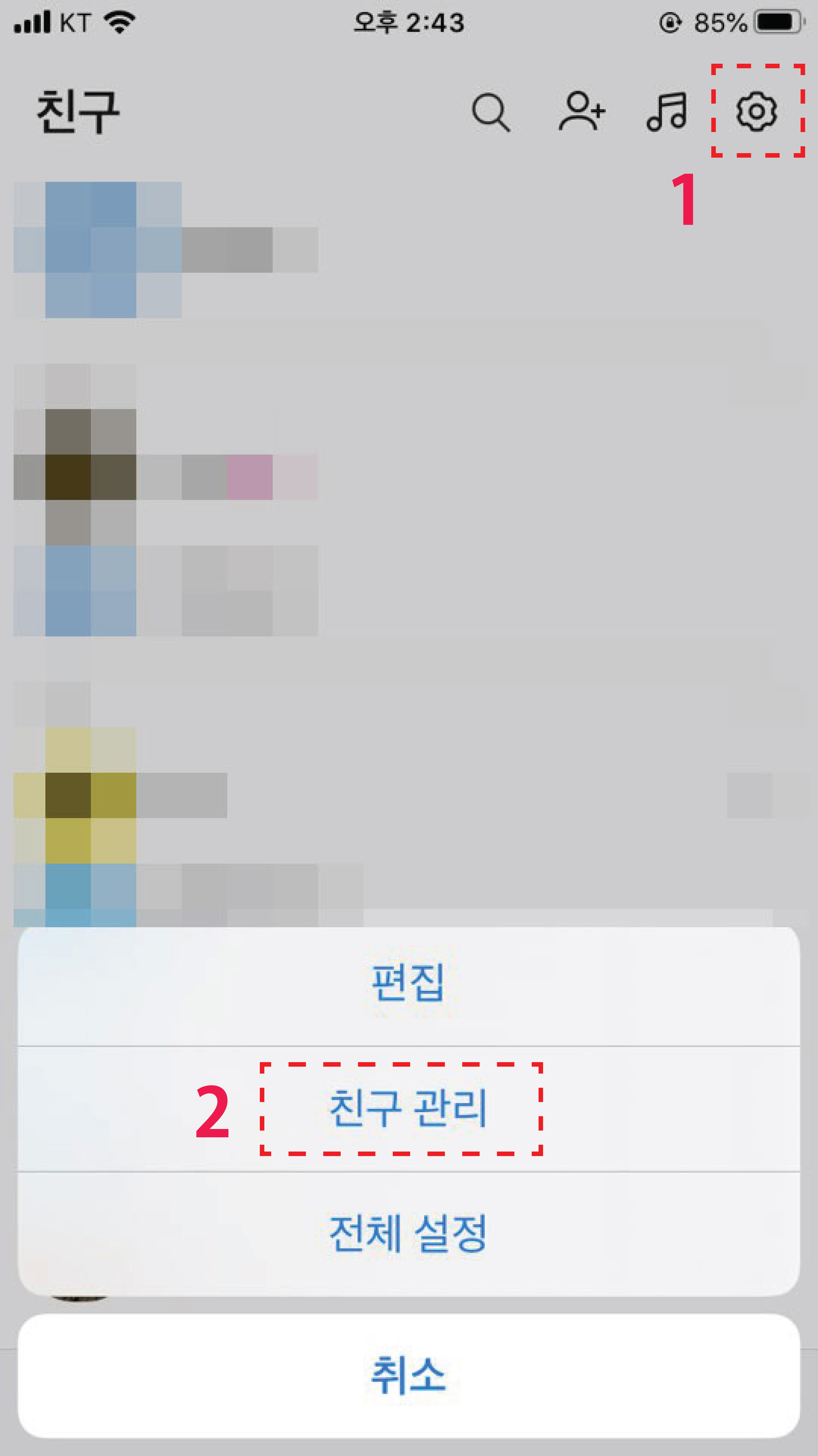 2. 친구 관리를 눌러줍니다