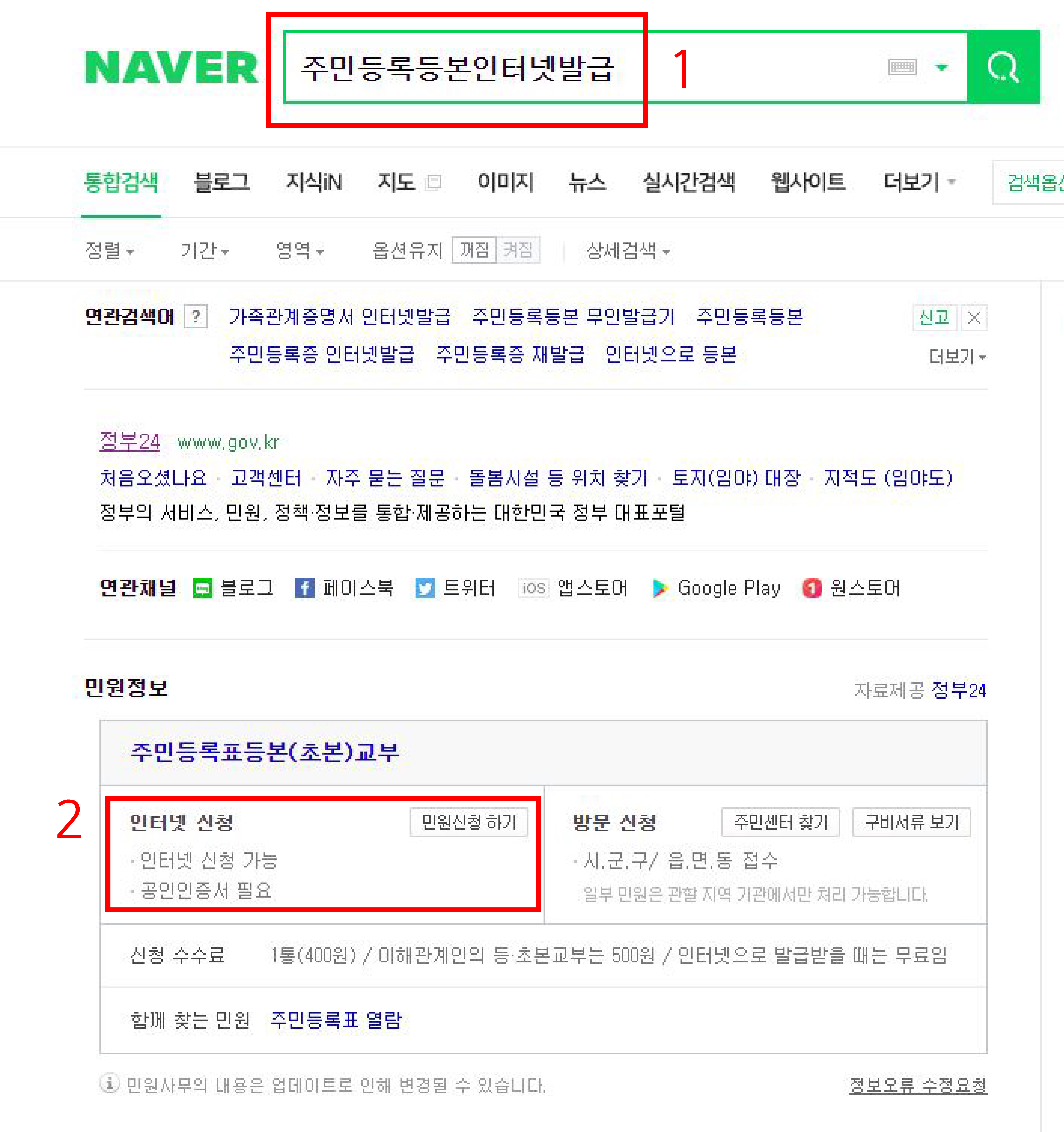 방문해서 출력할 경우에는 수수료가 400원인데 반해 인터넷 발급은 무료라는 점!!