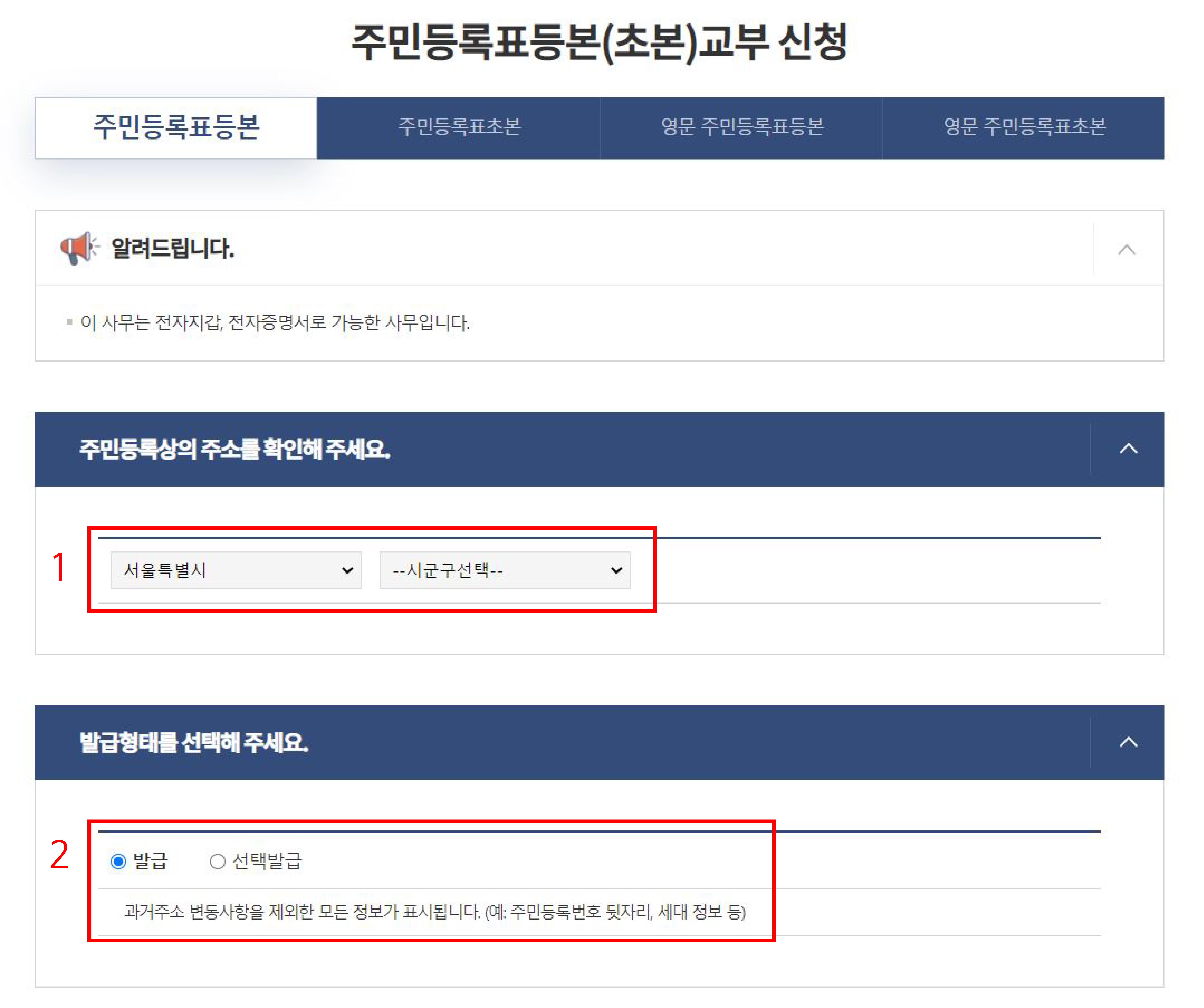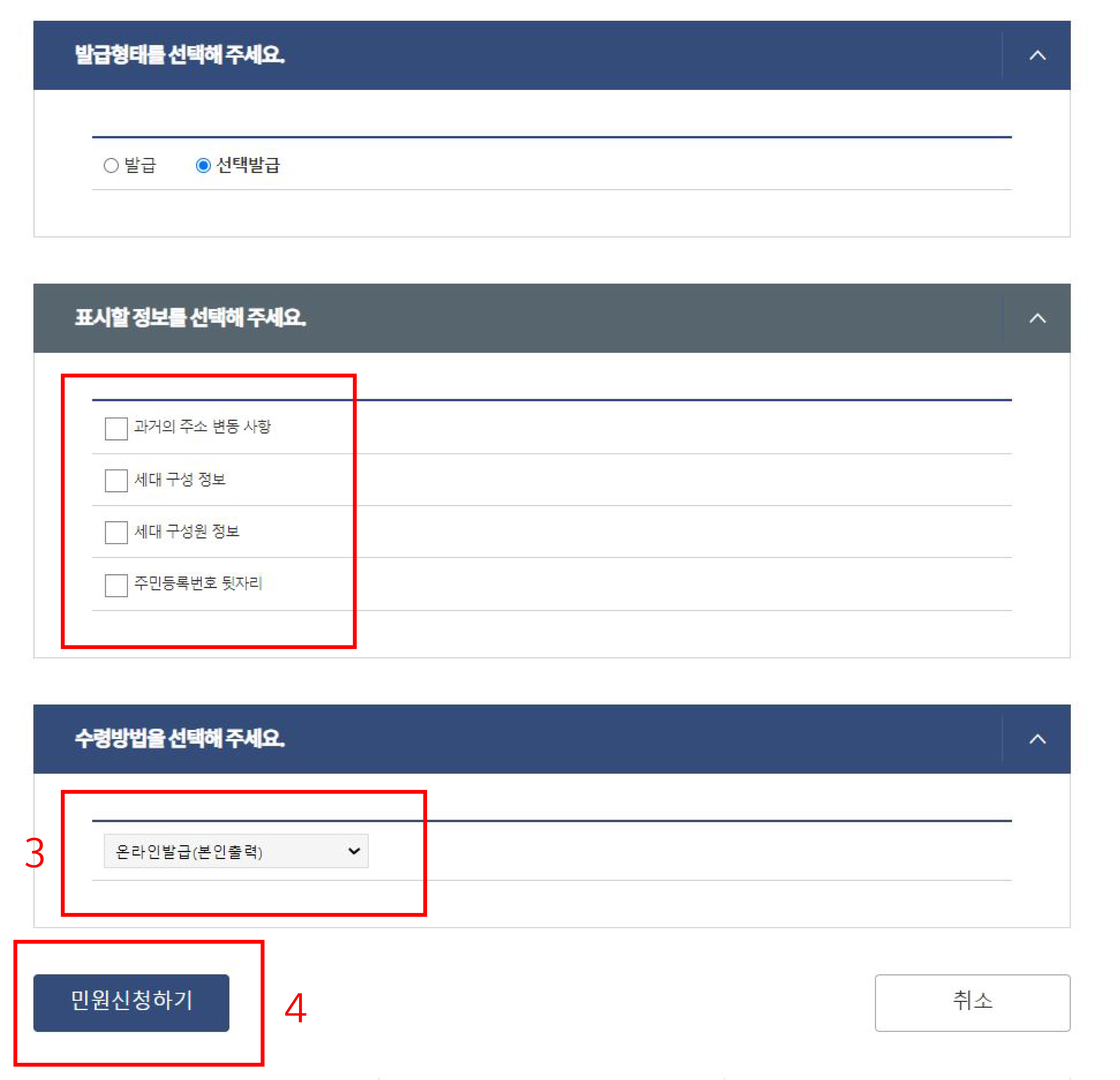 (그냥 발급을 할 경우 과거 주소 변동사항을 제외한 모든 정보가 표기됩니다)