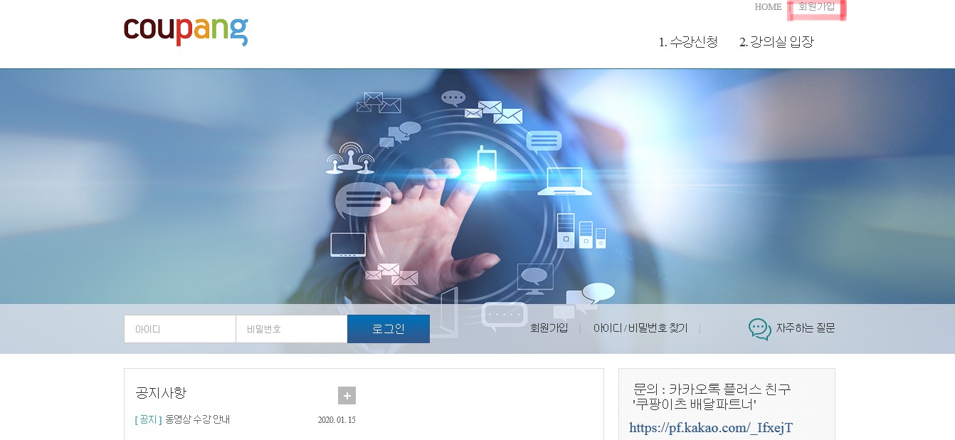 회원가입을 모두 마치셨다면 로그인 후 수강신청을 눌러줍니다
