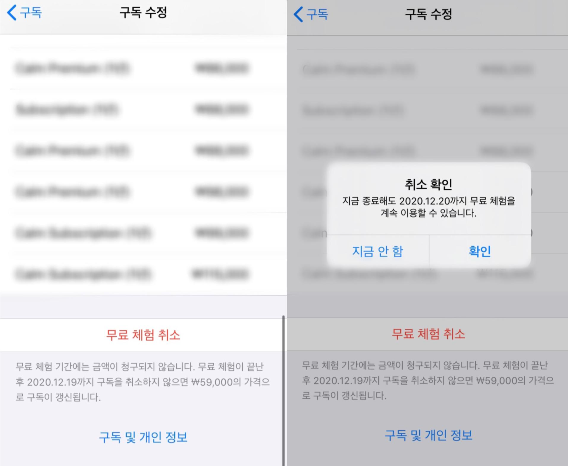 이럴 경우 자동결제가 되기 전 어플 구독취소를 할 수 있는 방법이 있습니다