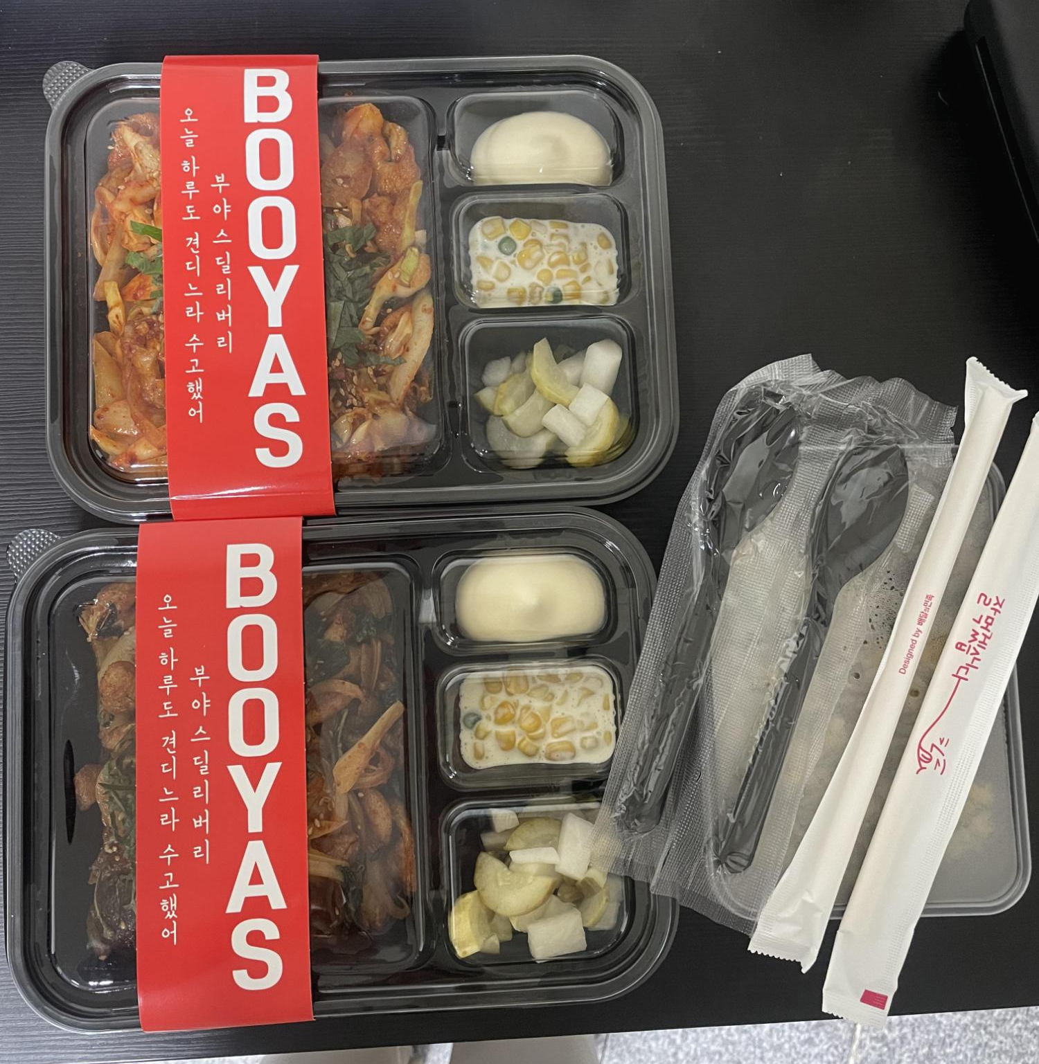 부야스 곱창은 특이하게 도시락 용기에 포장해서 주더라구요! 곱창과 반찬이 용기 안에 같이 들어가 있어 먹기 편했습니다.