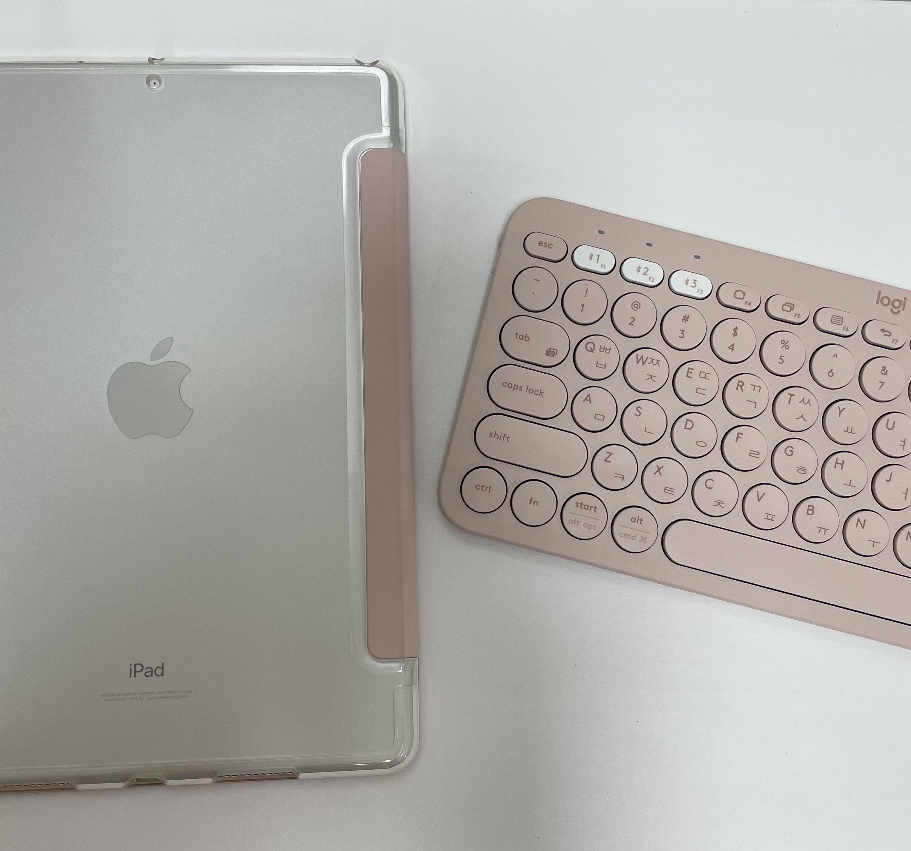 아이패드와 놓고 한컷 찍어보았는데요 역시...로지텍k380은 아이패드와 찰떡인 것 같네요😍