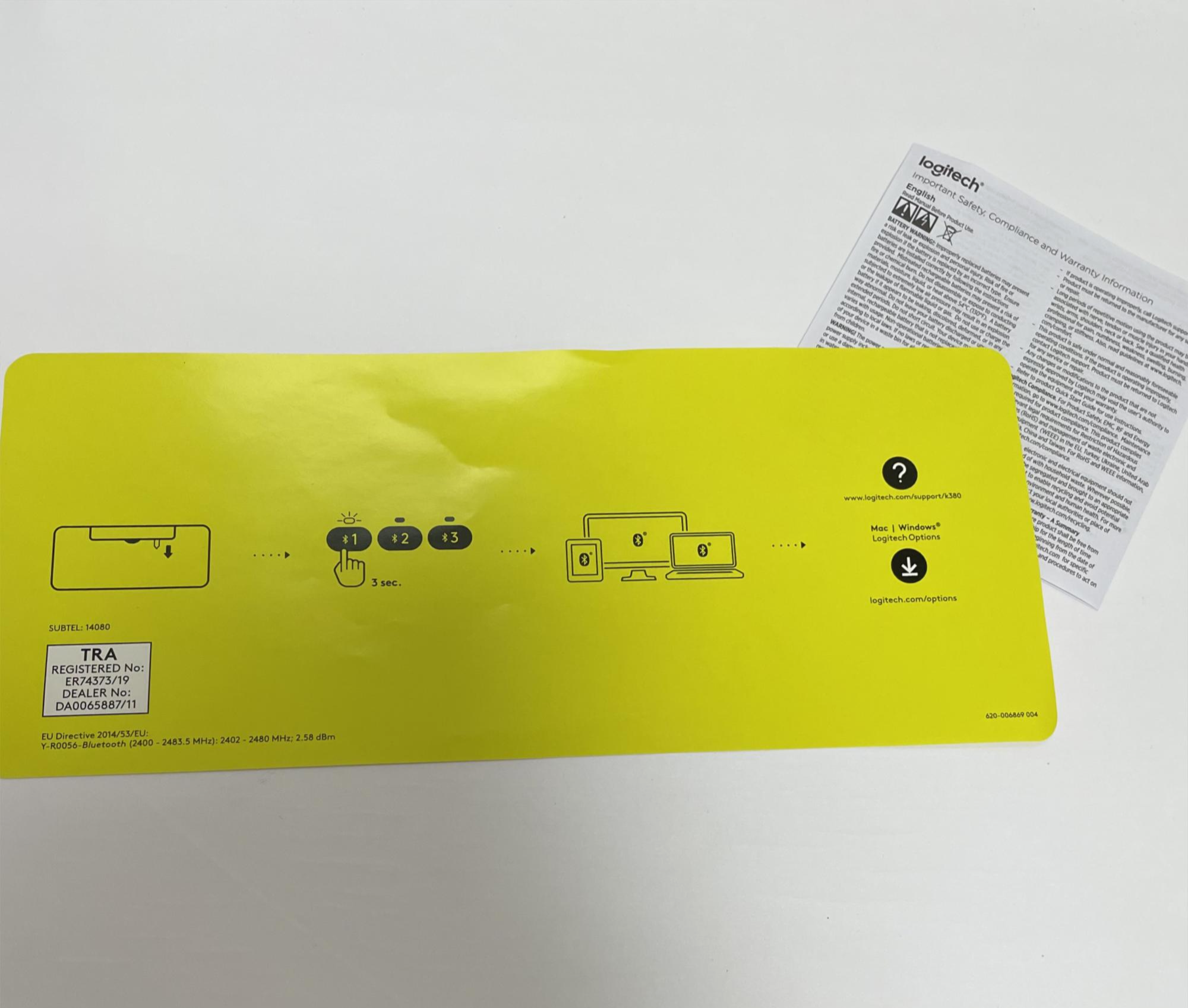 박스안에는 키보드 연결 방법에 대한 간단한 사용설명서가 들어있었는데요! 로지텍k380는 가장 큰 장점은 하나의 키보드에 3개의 디바이스와 연결하여 사용이 가능하기 때문에 여러기기를 함께 두고 사용하시는 분들에겐 최적의 키보드가 아닐까 싶습니다 ㅎㅎ